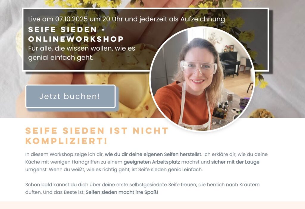 Selbst Seifen zu sieden kann herausfordernd wirken – doch mit einer erfahrenen Begleitung wird der Einstieg leicht. Katharina bringt ihr Wissen verständlich auf den Punkt, beantwortet Fragen und zeigt dir live, wie deine Seife gelingt. Schritt für Schritt lernst du: