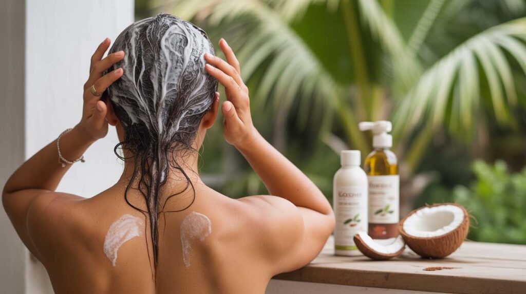 Massiere Kokosöl in die Kopfhaut ein – das fördert die Durchblutung und kann das Haarwachstum unterstützen.